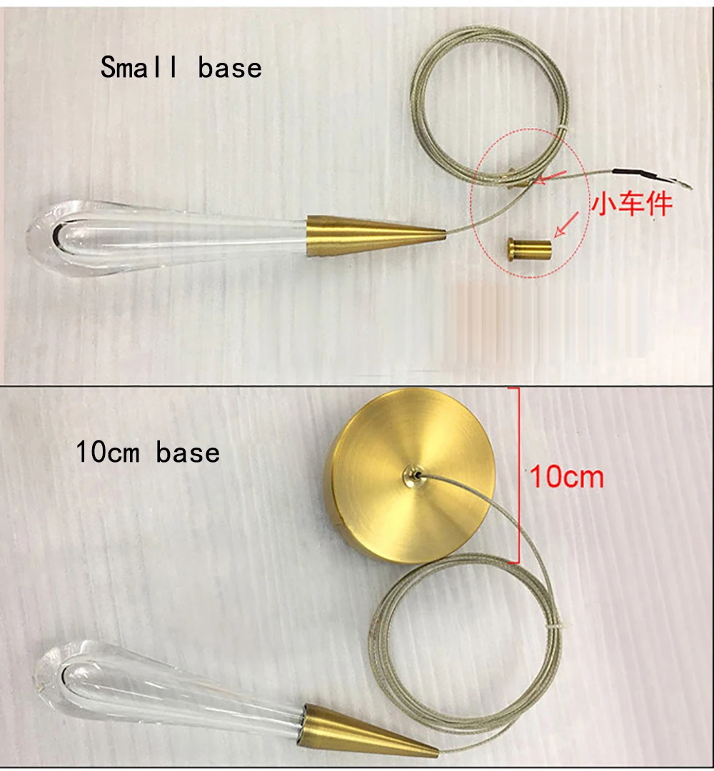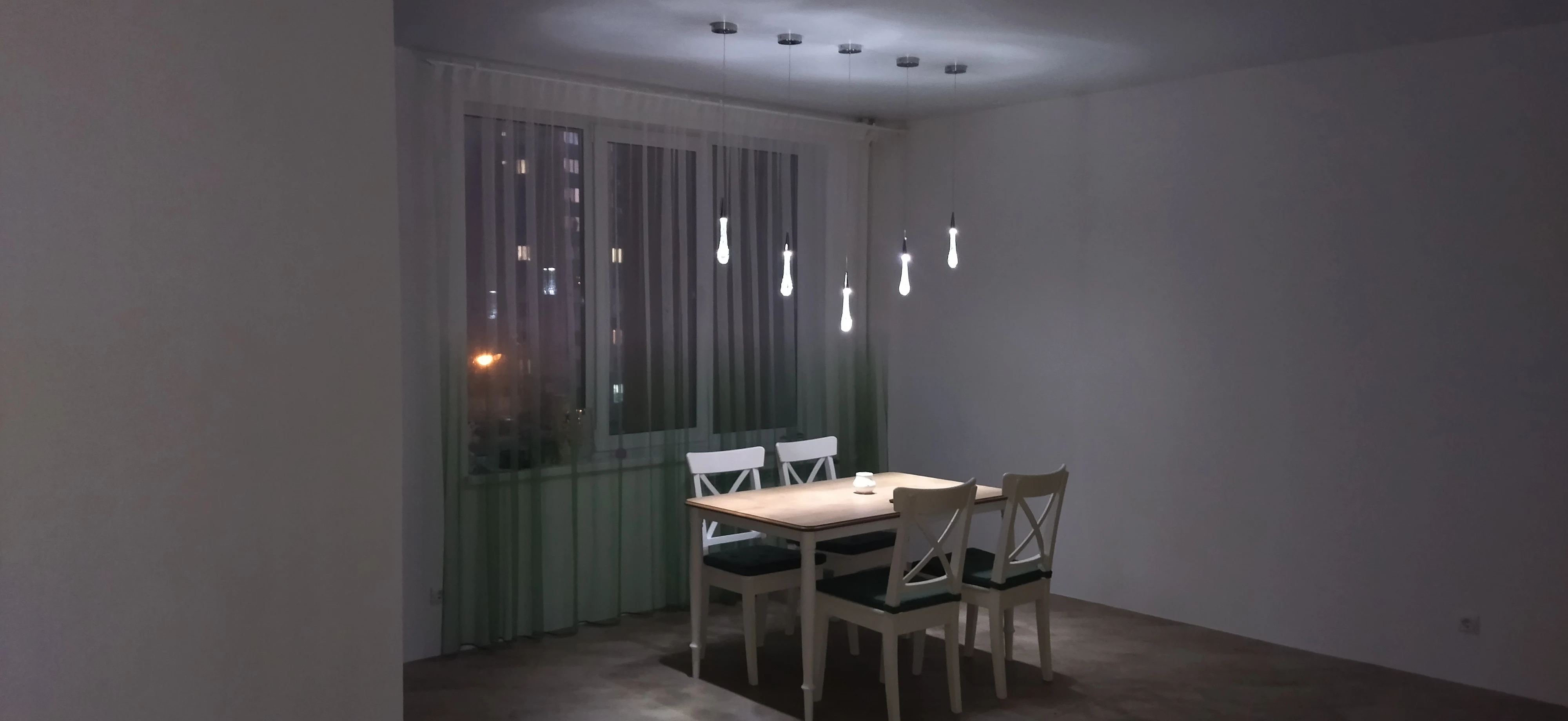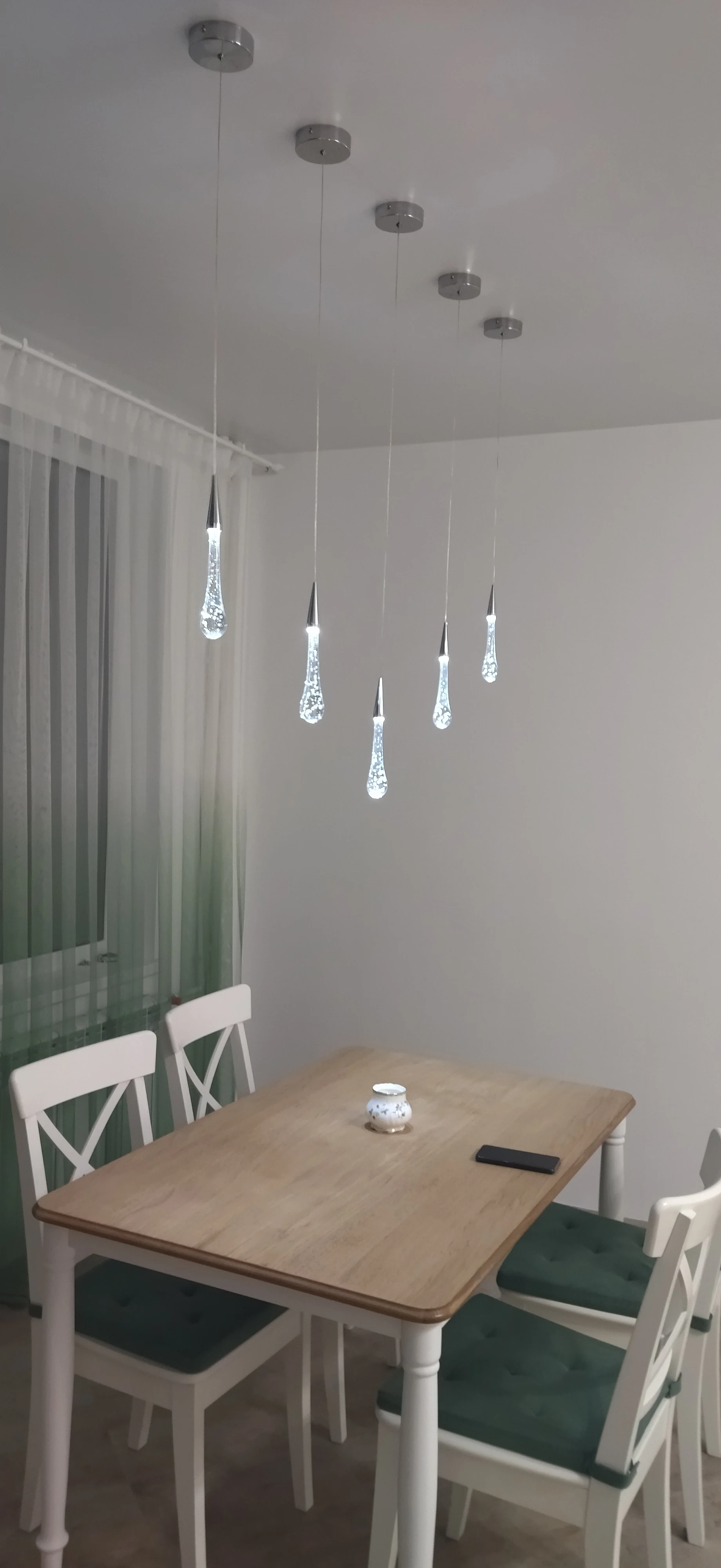 Один из самых долгих заказов. Оформил в январе 2022, посылка пришла в мае 2022. Ждали почти пол года. Продавец на многочительные сообщения не отвечал и вообще ни разу не вышел на связь за это время. Отправил через 2 месяца. По товару - коробка пришла вся мятая, но светильники целые. Много мелких царапин на светильниках. Провод достаточно длинный (1,5-2м) что позволяет подобрать оптимальную высоту без проблем. Крепеж простой.