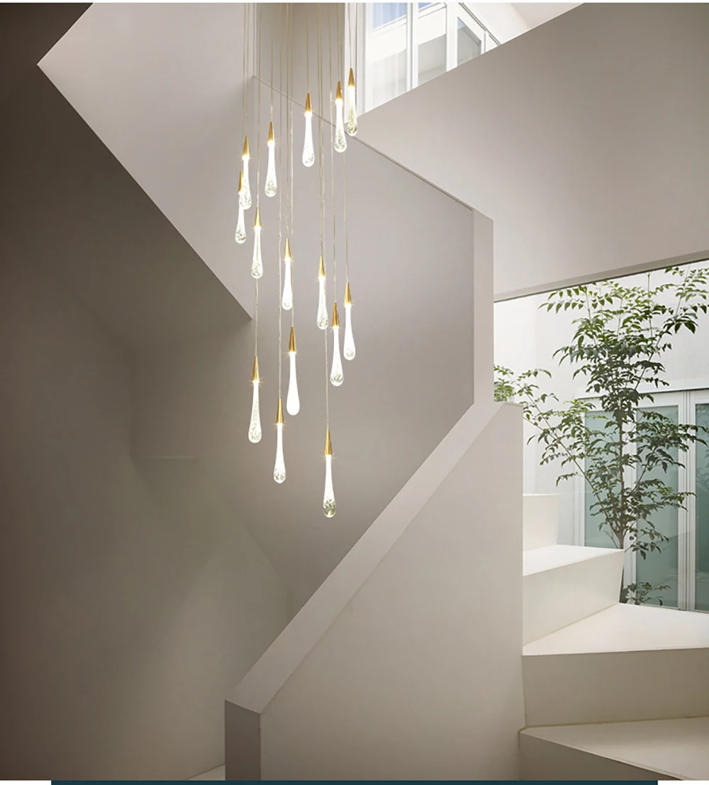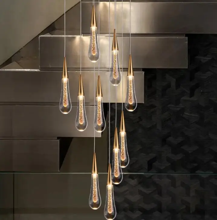 Отличная-JUNAMT Raindrop Люстра декоративные лестницы потолочный светильник в виде капли воды, с украшением в виде кристаллов светильник Кухня остров для гостиничного Холла жизни