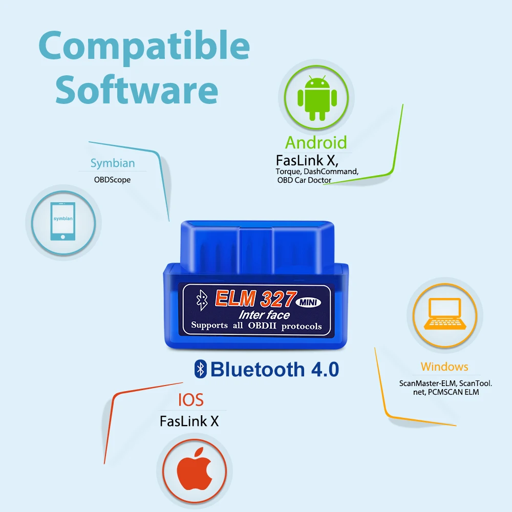 "Mini ELM 327 Bluetooth для Android iPhone" совместимое программное обеспечение: