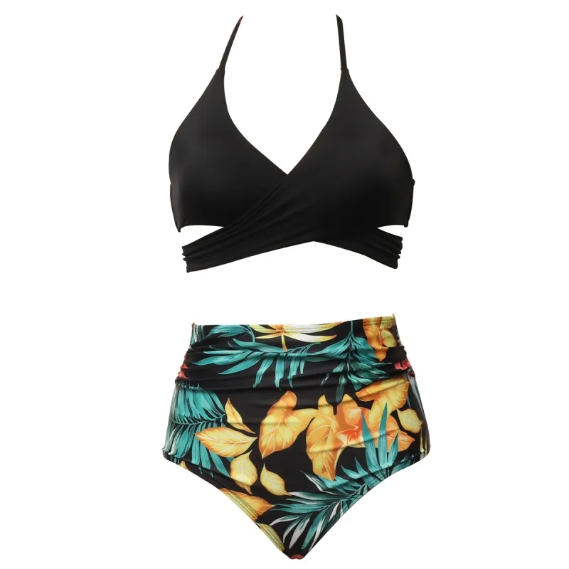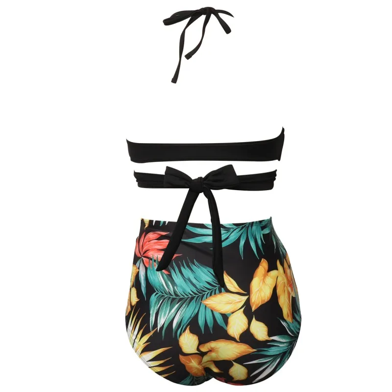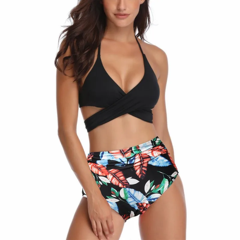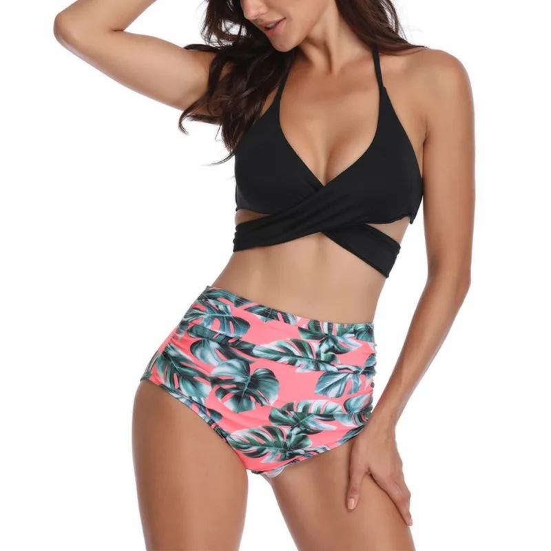 Для женщин купальник Высокая Талия бикини ванный комплект размера плюс, купальник, пуш-ап, бикини, набор, Винтаж пляжная одежда Biquini