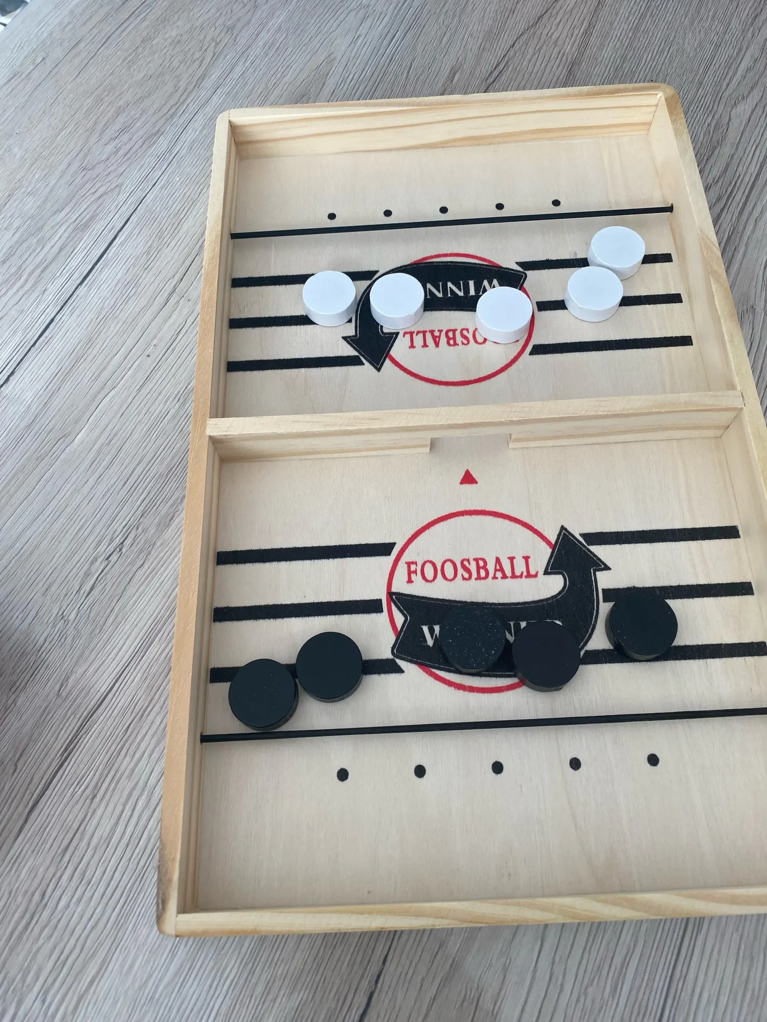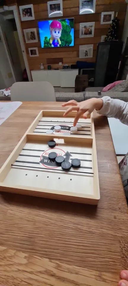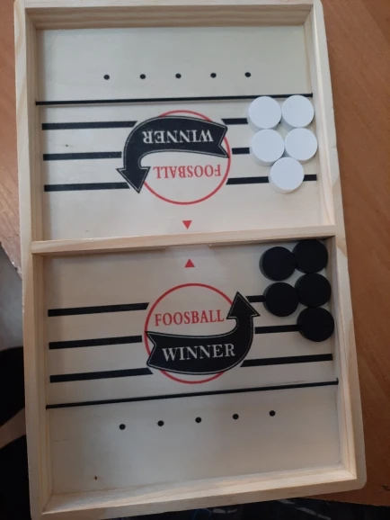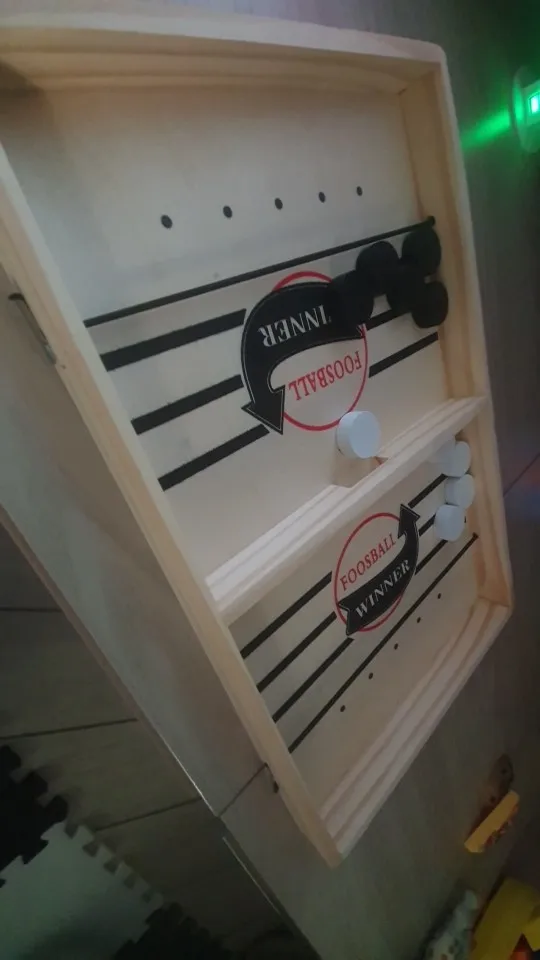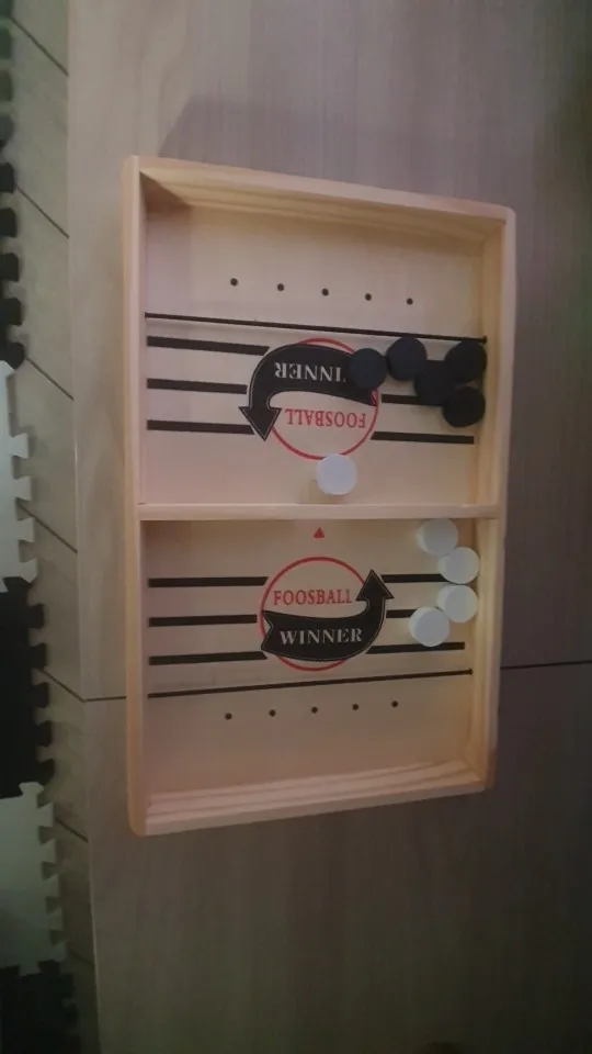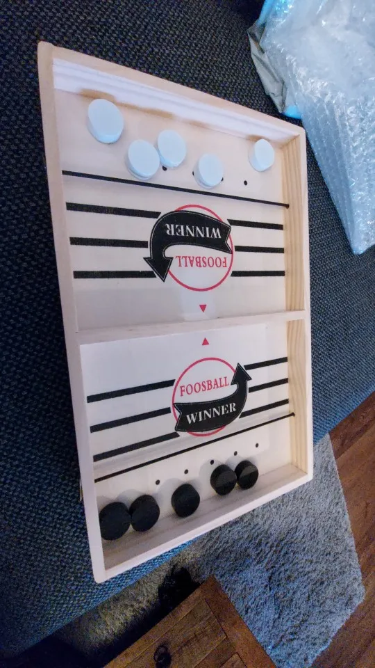 Эта игрушка't построен должным образом для шайбы он поставляется с. Куски не скользят легко в другую сторону и часто просто улетают с доски, когда выстрел. Не стоит получать. У нас 'ве была оригинальная игра, и она не сравнится.