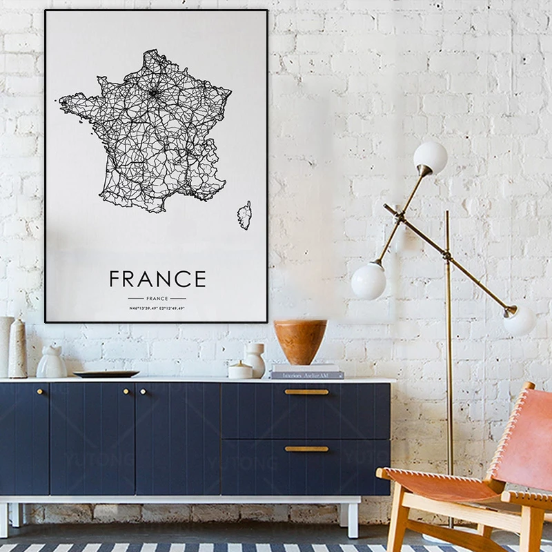 Французская Дорожная карта страны, украшение для гостиной в скандинавском стиле, холст, плакат, Современный домашний декор, Художественная печать, живопись icon star icon star icon star icon star icon star
