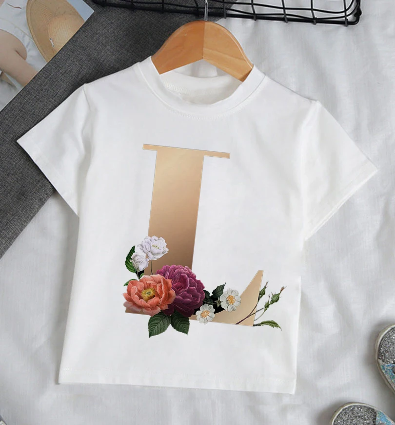 Детская футболка с коротким рукавом, топы с золотыми буквами для ма...