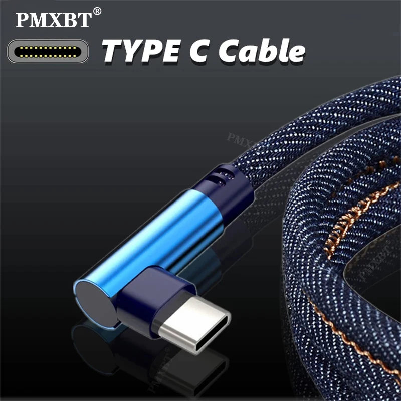 USBC кабель для быстрой зарядки деним 2.4A 90 градусов Тип C шнуры ...