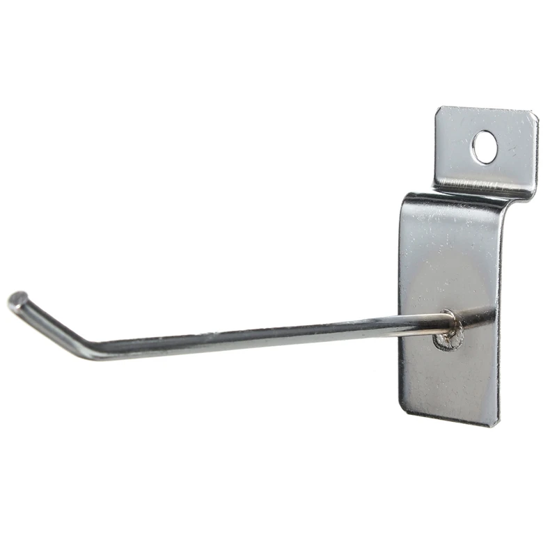Особенности: Slatwall крючки для панелей slatwall Блестящая хромированная отделка Верхний конец 30 градусов Гладкий Круглый концевой наконечник для дополнительной безопасности Технология сварки делает его невероятным сильным