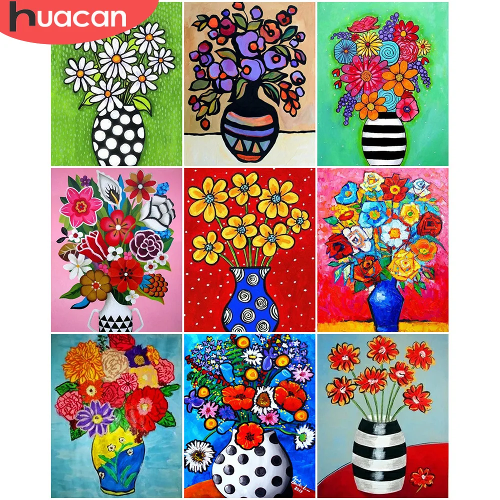 HUACAN картина по номерам цветы в вазе для взрослых 50x65 см DIY комнаты стены искусства фотографии по номеру украшение дома подарок