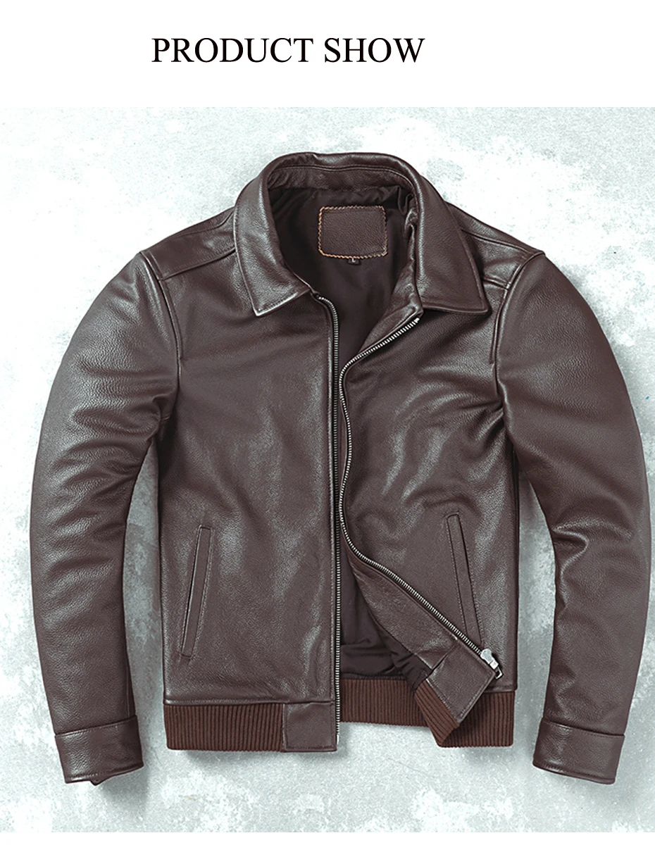 Мужская винтажная байкерская куртка из воловьей кожи, коричневого цвета