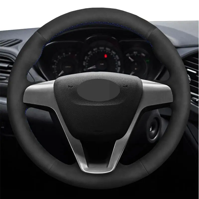 Ручной работы черная замша чехол рулевого колеса автомобиля для Lada Vesta 2015-2019 X-Ray 2015-2019