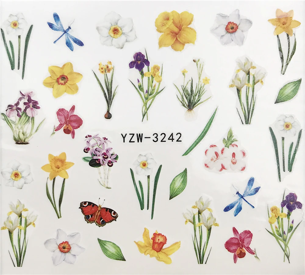 С цветочным принтом цветочный стикер наклейка на ногти водная накле...