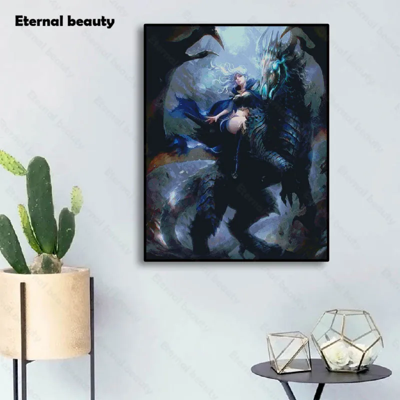 Алмазная живопись фантазия Дракон мифический зверь и девочка мультфильм летающие крылья животные Алмазная вышивка ручной работы Алмазная мозаика
