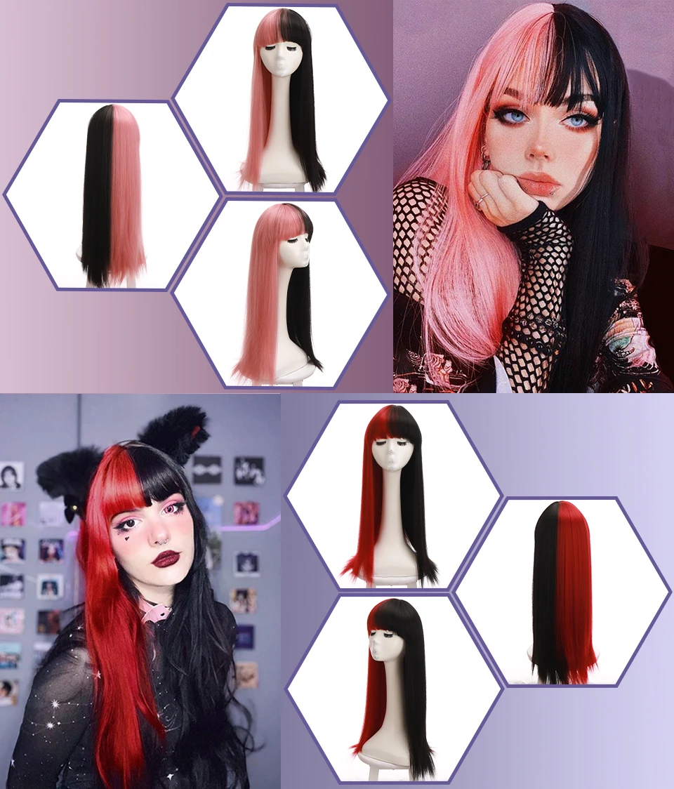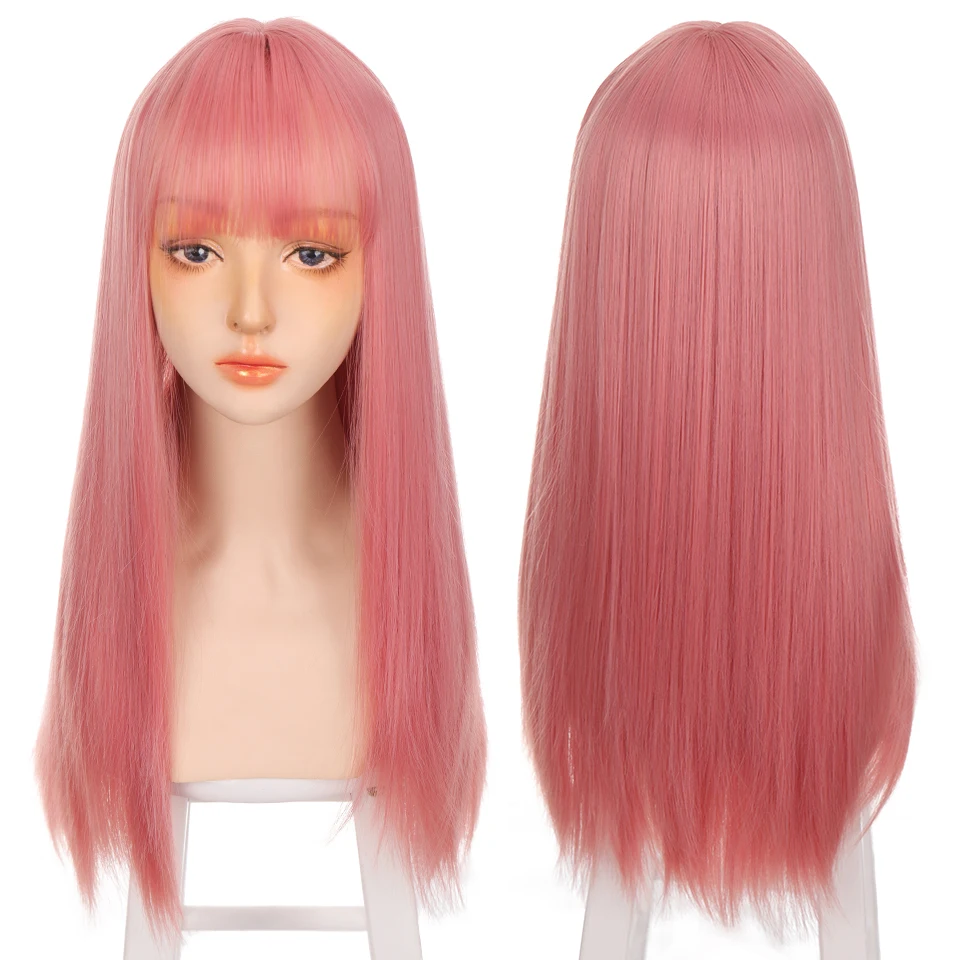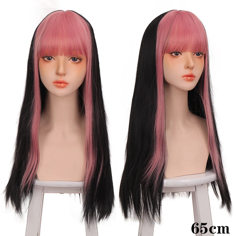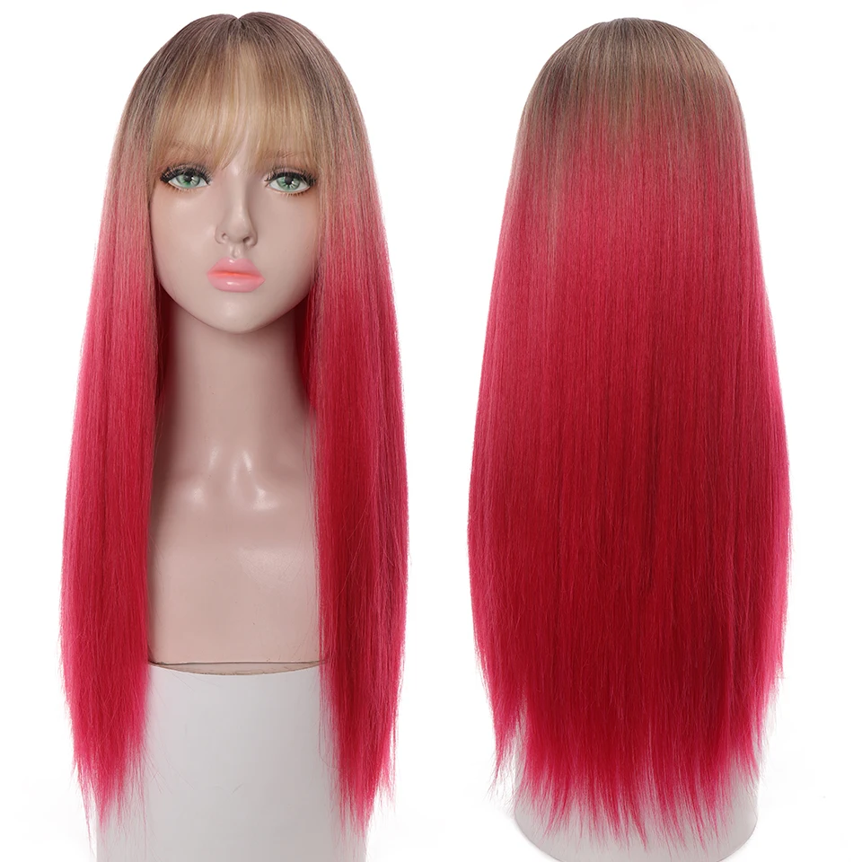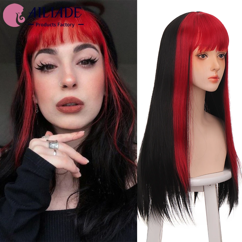 Синтетические длинные прямые парики AILIADE с красно-розовой челкой, парики для косплея для женщин, черно-пепельный золотой парик для вечевечерние Лолиты, искусственные волосы