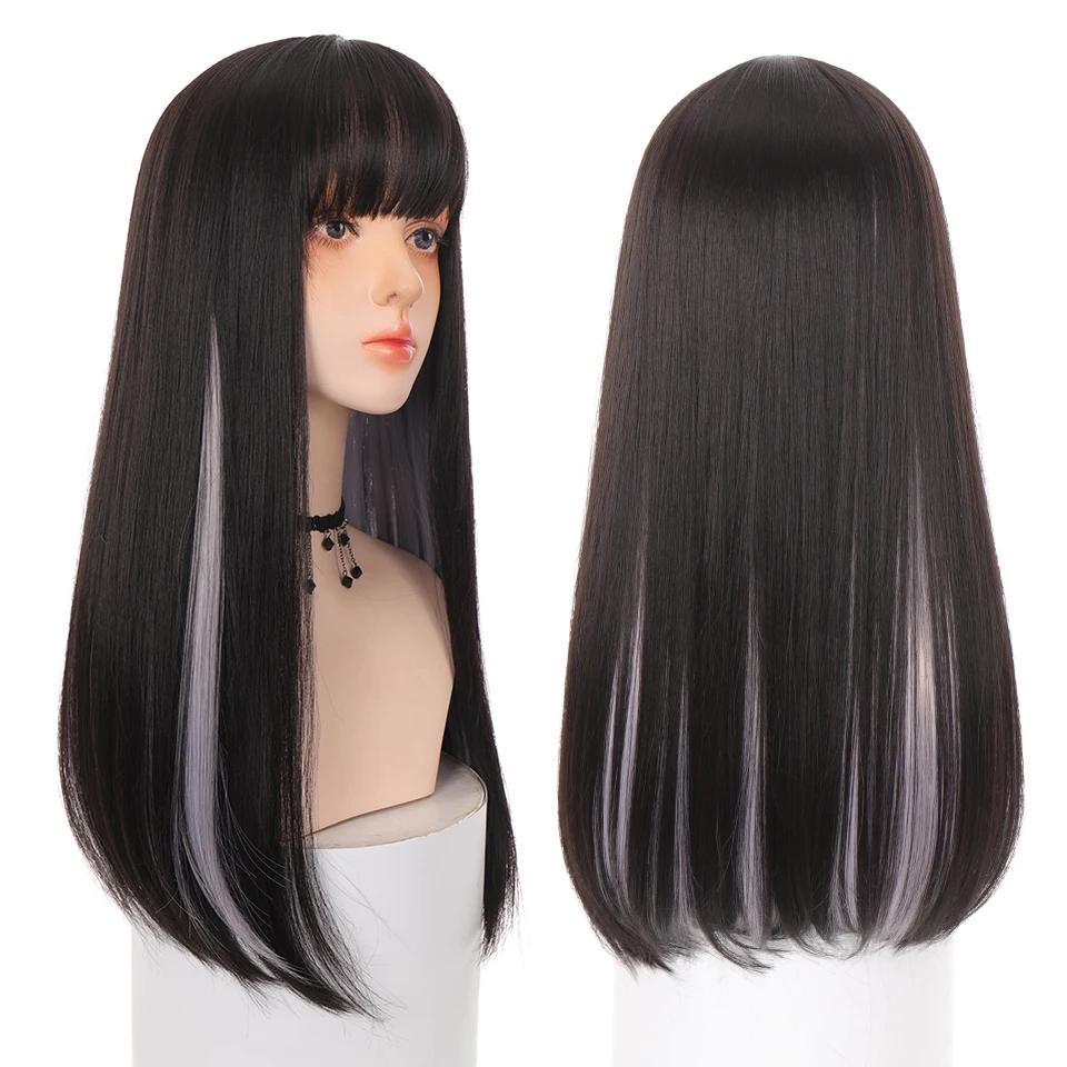 Синтетические длинные прямые парики AILIADE с челкой, парики для ко...