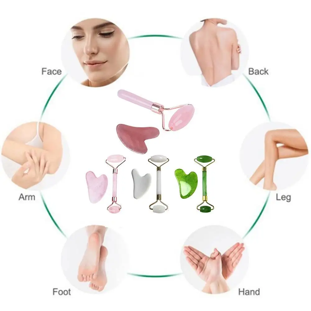 Камень для массажа лица Kamien Gua Sha, Нефритовый камень из розового кварца, 2 шт.компл., ролик для массажа лица, скребок для лица