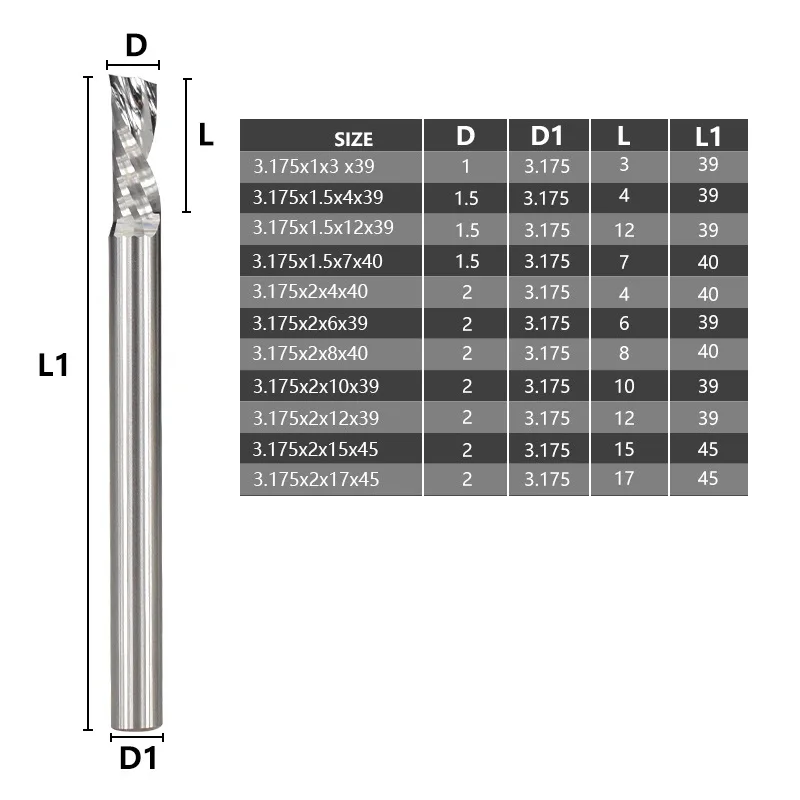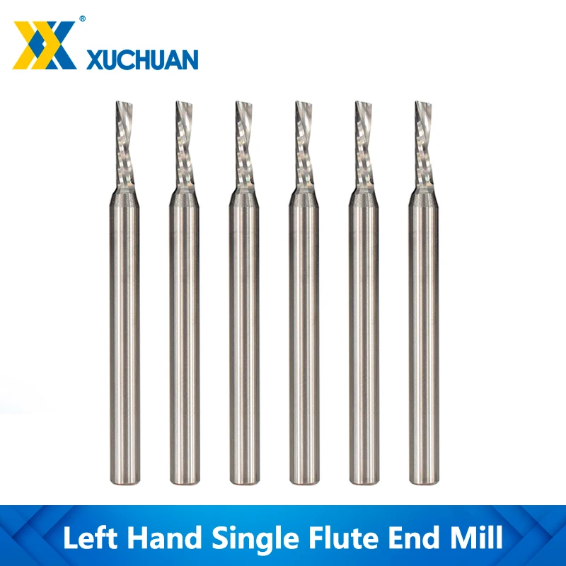 Концевая фреза с одной канавкой, алюминиевая фреза, левая фреза, хвостовик 3,175, карбид вольфрама, концевые фрезы, спиральная фреза с ЧПУ