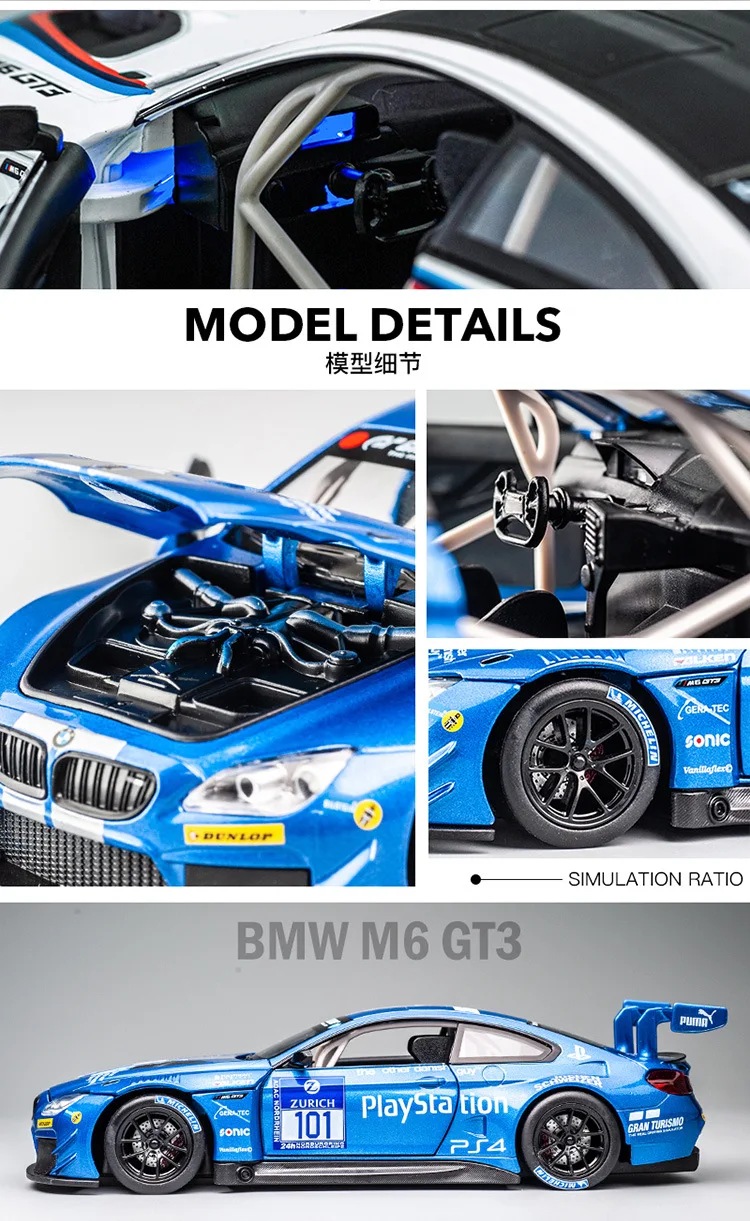 1:32 BMW M6 GT3 Le гоночная модель из сплава литье под давлением им...