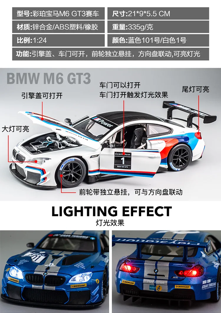 1:24 Модель гоночного автомобиля BMW M6 GT3 из сплава, Литые металл...