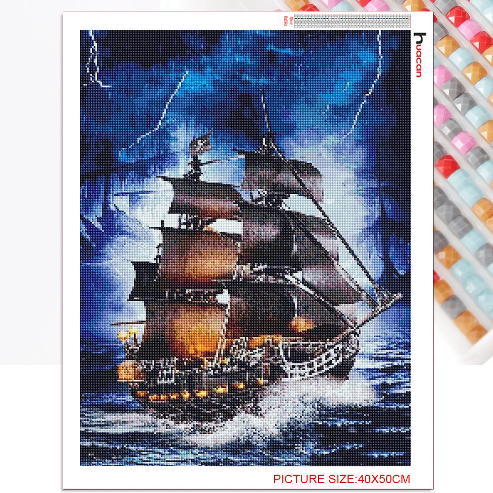 Huacan 5d алмазная вышивка набор Парусник в море вечерние алмазов картина камни в форме ромбаКруглая Мозаика Lightning Пейзаж головоломка Сделай сам!