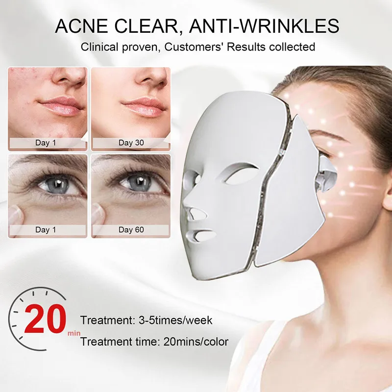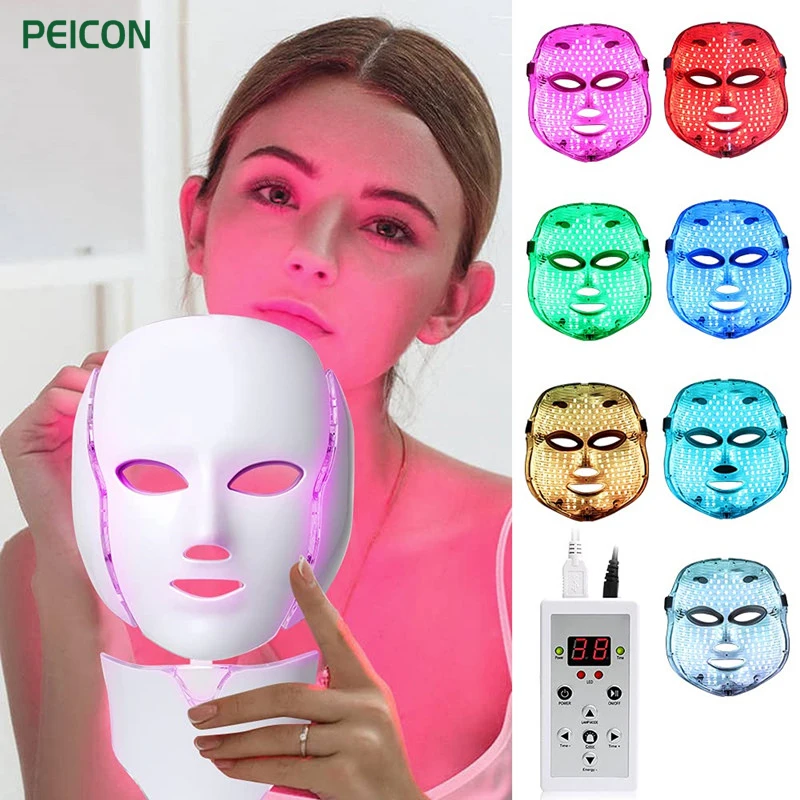Светодиодная маска для лица, светящаяся терапия, 7 цветов, омоложение кожи, фотоновая маска, уход за кожей, омоложение кожи, подтягивание морщин для лица и шеи