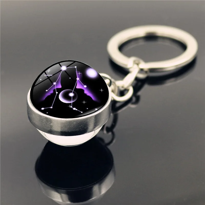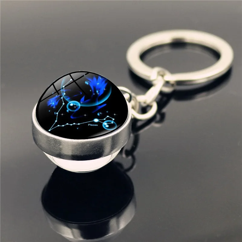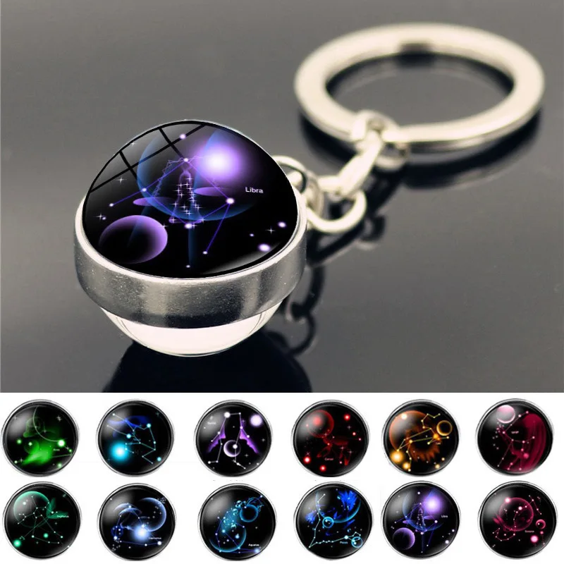 Брелок для ключей со стеклянным шаром, со знаком зодиака, 12, брело...