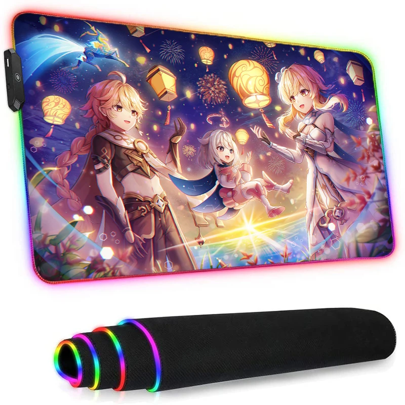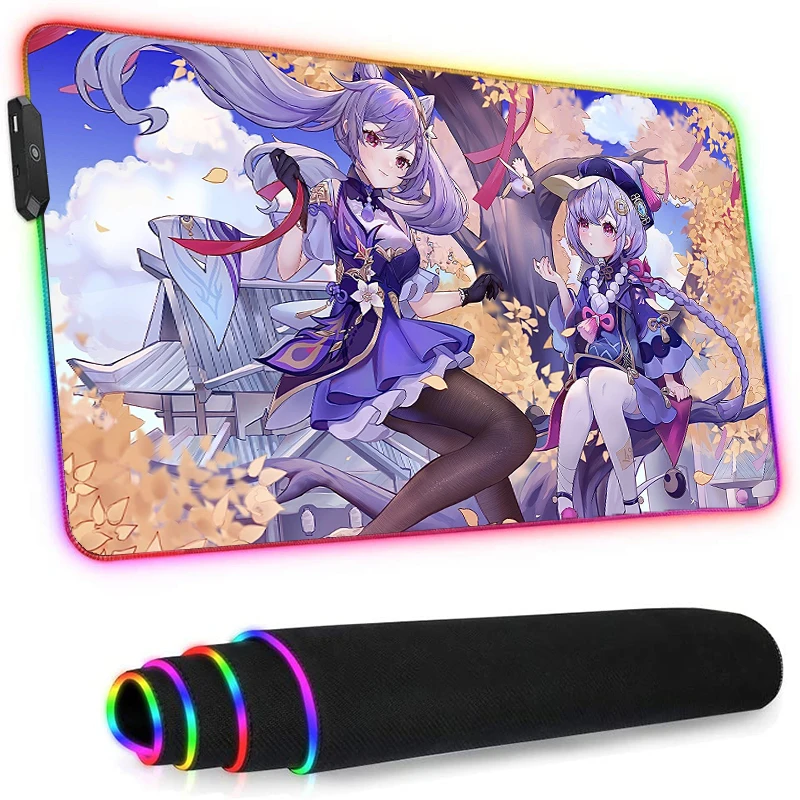 Ударный коврик Genshin, коврик для мыши для геймеров, светодиодный коврик для мыши, Rgb Аниме настольный коврик, игровые подставки, светящийся коврик для геймеров Longteng