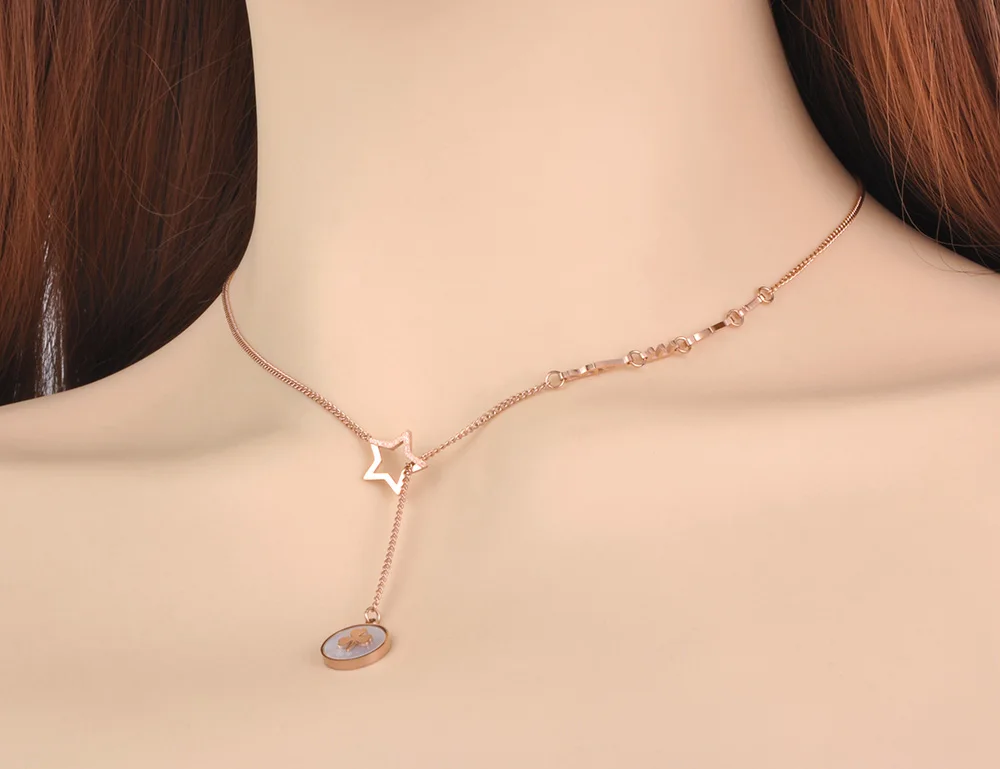 Женское колье-чокер Lokaer, ожерелье из титана и нержавеющей стали, с ракушками из розового золота Очаровательная подвеска в форме звезды пробы, N20293