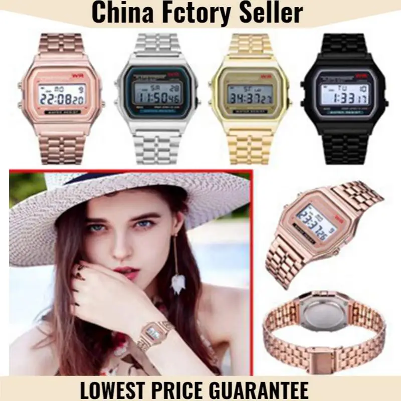 Роскошные часы со стальным ремешком F91W, ретро светодиодные цифров...