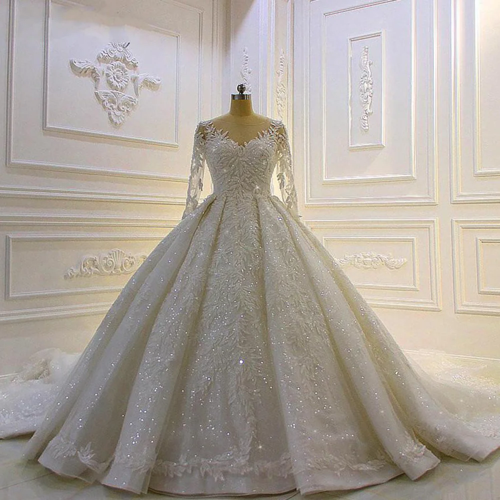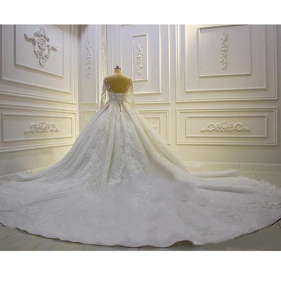 Новые Заказные Свадебные платья больших размеров для свадеб с длинным рукавом трапециевидной формы с аппликацией со шлейфом на шнуровке свадебное с блестками платья