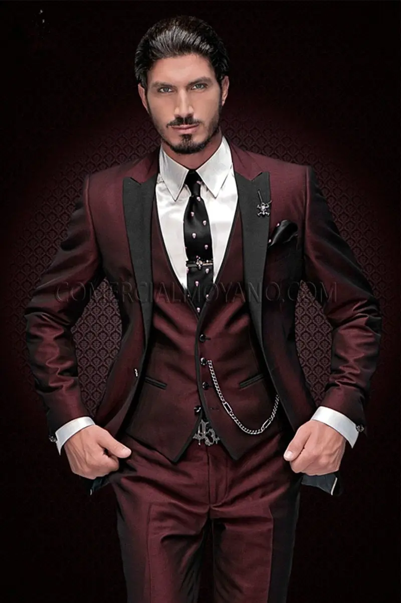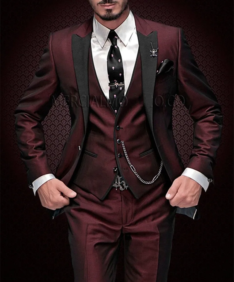 Новое поступление 2022, пик для жениха, мужской пик, черный отворот смокинг для жениха бордовый, мужские костюмы, Свадебный блейзер для лучшего человека (пиджак + брюки + жилет)