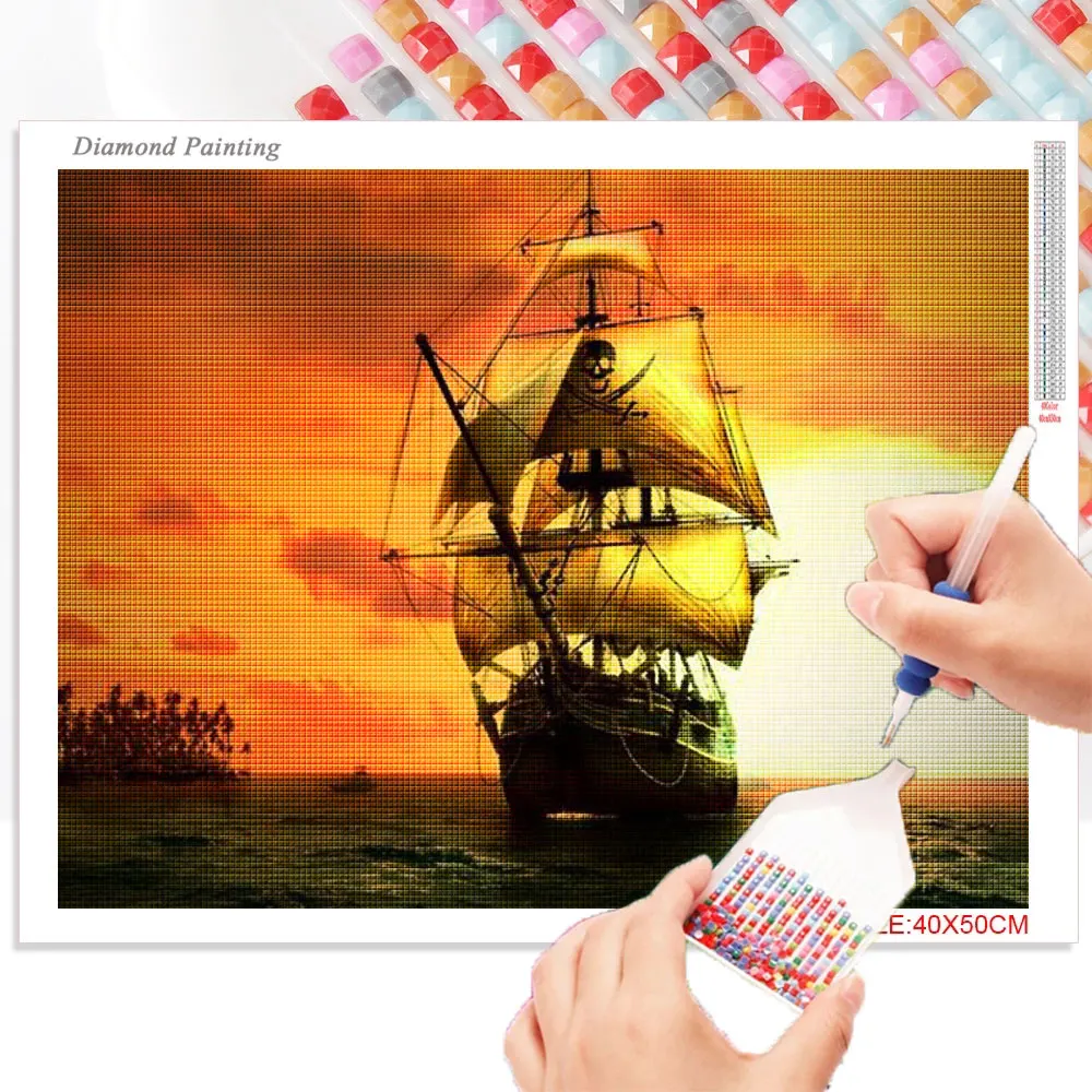 *Площадь сверла:Полностью квадратная/круглая Алмазная мозаика парусник пейзаж