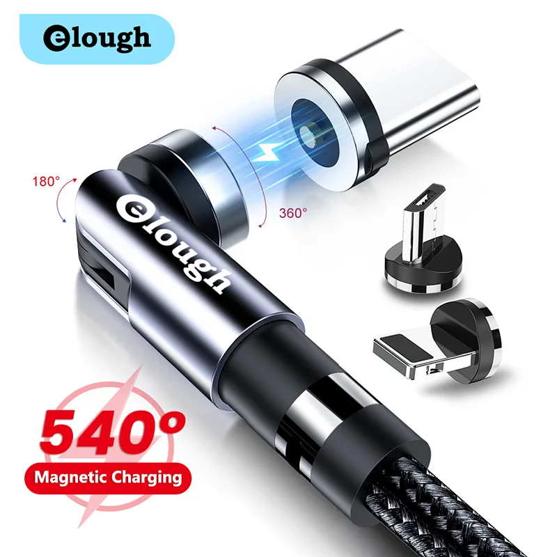 Вращающийся на 540 градусов Магнитный кабель Elough, магнитное зарядное устройство, кабель Micro USB Type C, кабель для iPhone, Xiaomi, Poco, Huawei