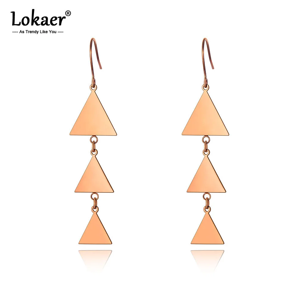 Геометрические треугольные серьги Lokaer в богемном стиле из титановой нержавеющей стали, креативные Висячие серьги, ювелирные изделия для женщин и девочек E19299