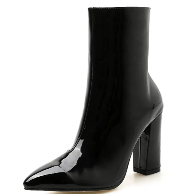 Женские ботильоны из лакированной кожи, с острым носком, на квадрат...