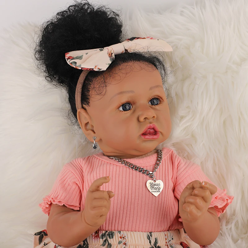 Младенец младенец 58 см, Saskia в темно-коричневом цвете кожи, мягкое тело, афроамериканская Милая принцесса, кукла для маленьких девочек, волосы с корнями рук
