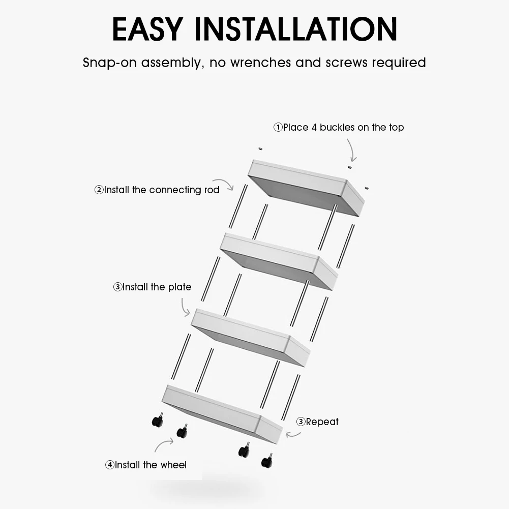 * 2. Оснащен 4 вращающимися колесами, которые легко и удобно держать тележку в рулоне куда угодно.