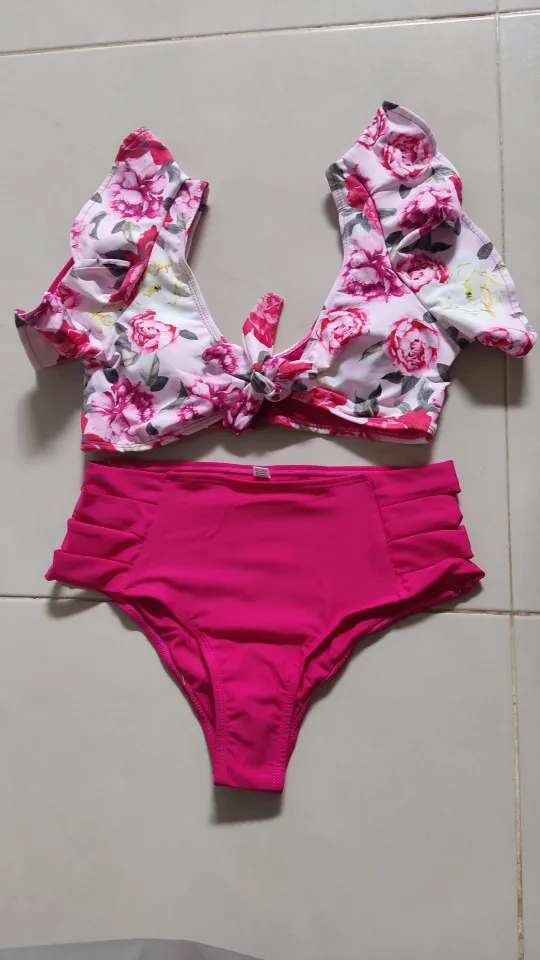 Женский купальник с оборками, бикини с высокой талией, пляжная одежда с бантом, 2021, купальный костюм с пуш-ап
