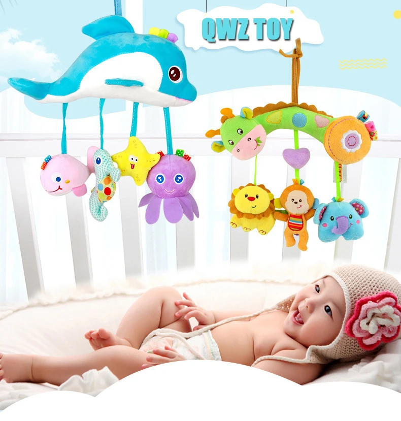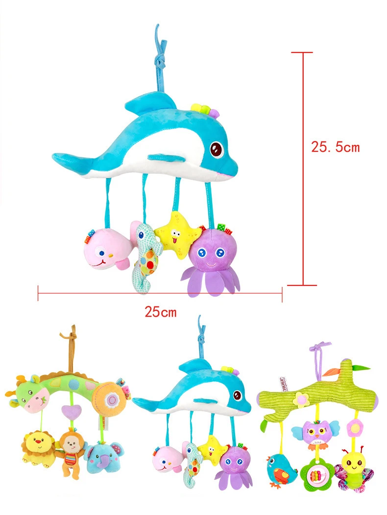 Мобильные плюшевые погремушки в виде жирафа, животных, с прорезывателем, для младенцев