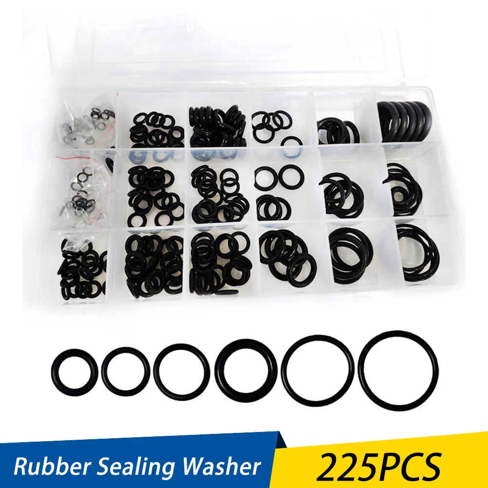 225 шт резиновое уплотнение уплотнительное кольцо Круглый маслостойкость уплотнительное кольцо шайба уплотнения Ассортимент Набор 18 размеров с Plactic коробка комплект