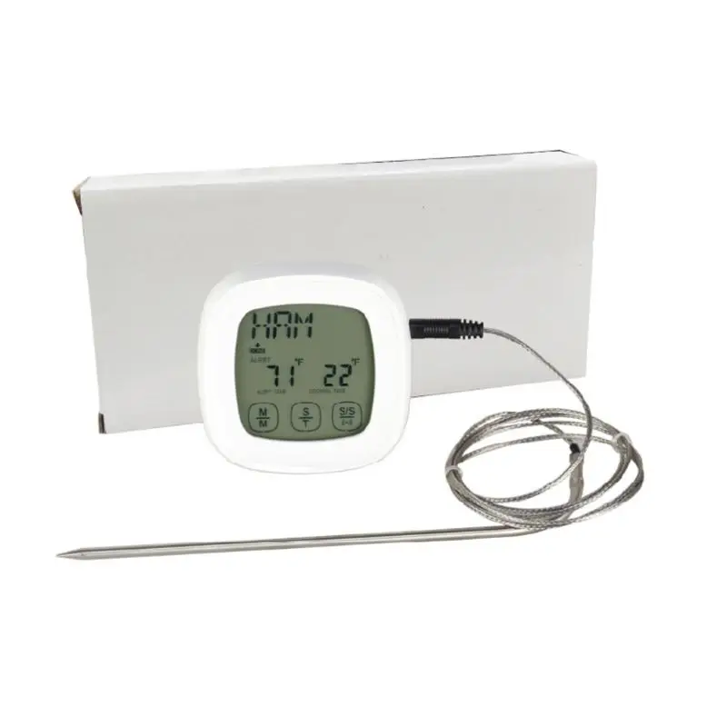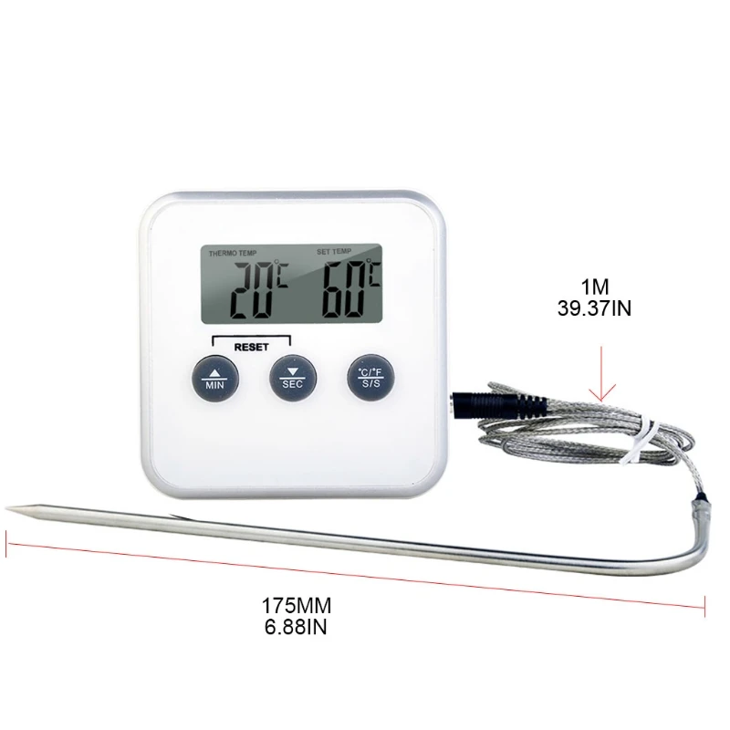 Цифровой Кухонный Термометр с большим ЖК-дисплеем, Длинный зонд для гриля, духовки, пищи, мяса, прибор для измерения температуры с таймером