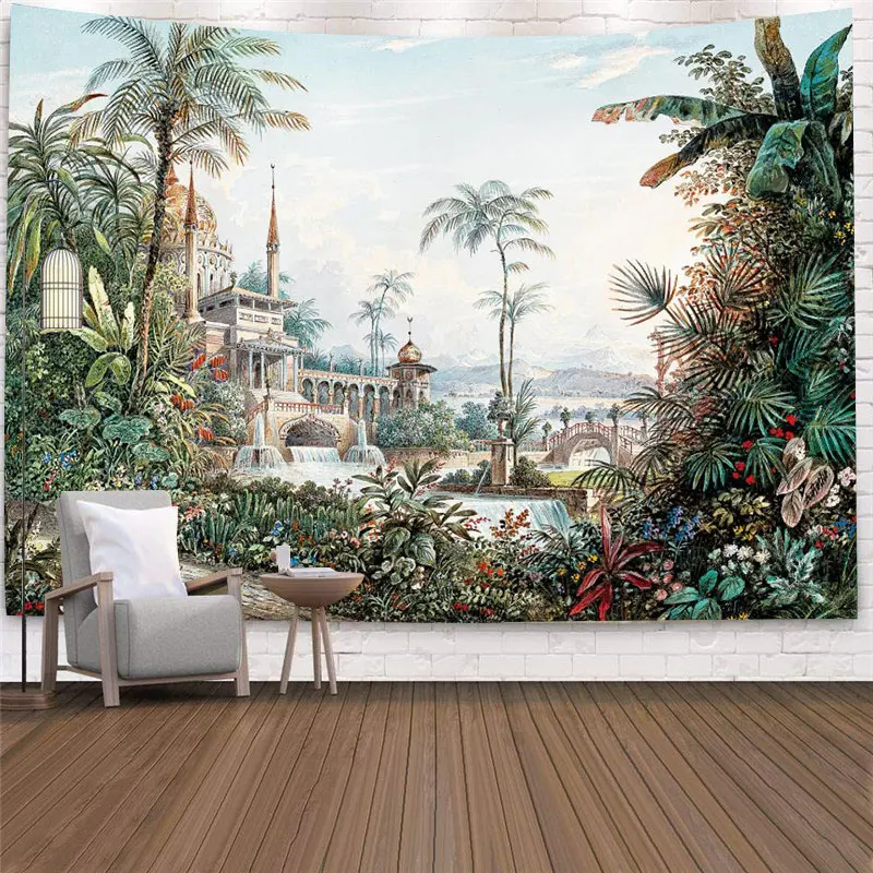 Гобелен с принтом тропических растений, настенный комнатный Декор на холсте, пальма, для гостиной, спальни