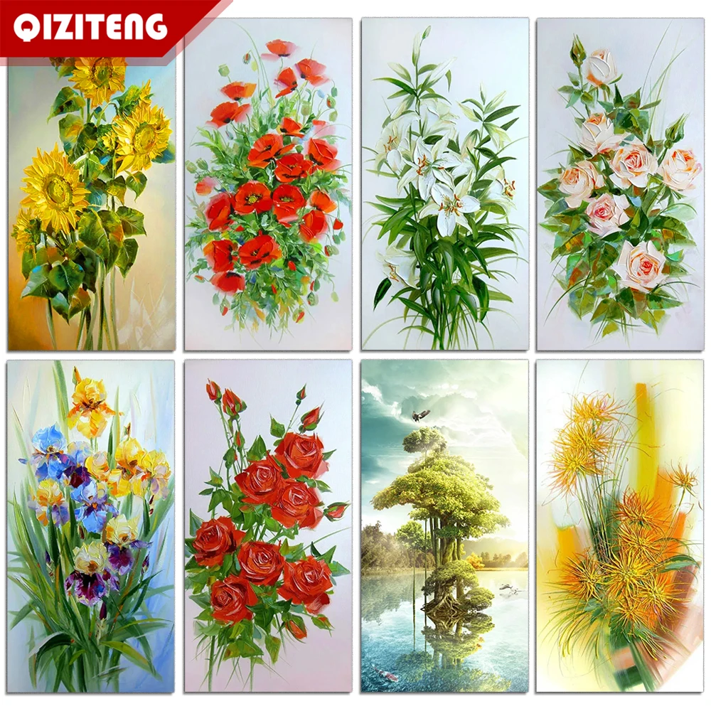 Алмазная картина QIZITENG 5D сделай сам с цветами, квадратнаякруглая Алмазная вышивка, натюрморт, украшение для дома, набор для мозаики, украшение для дома