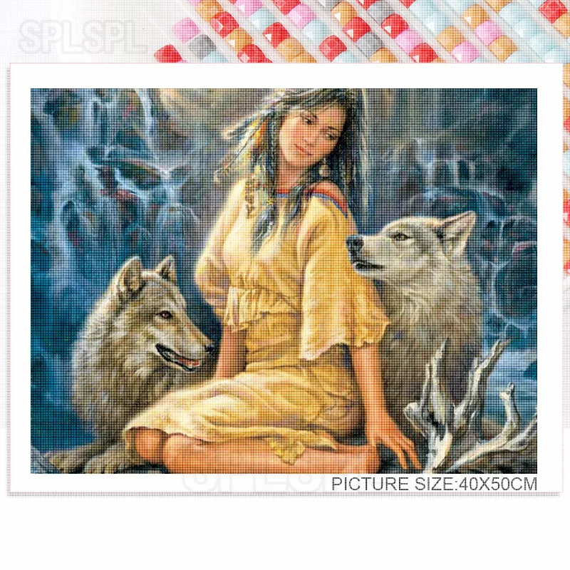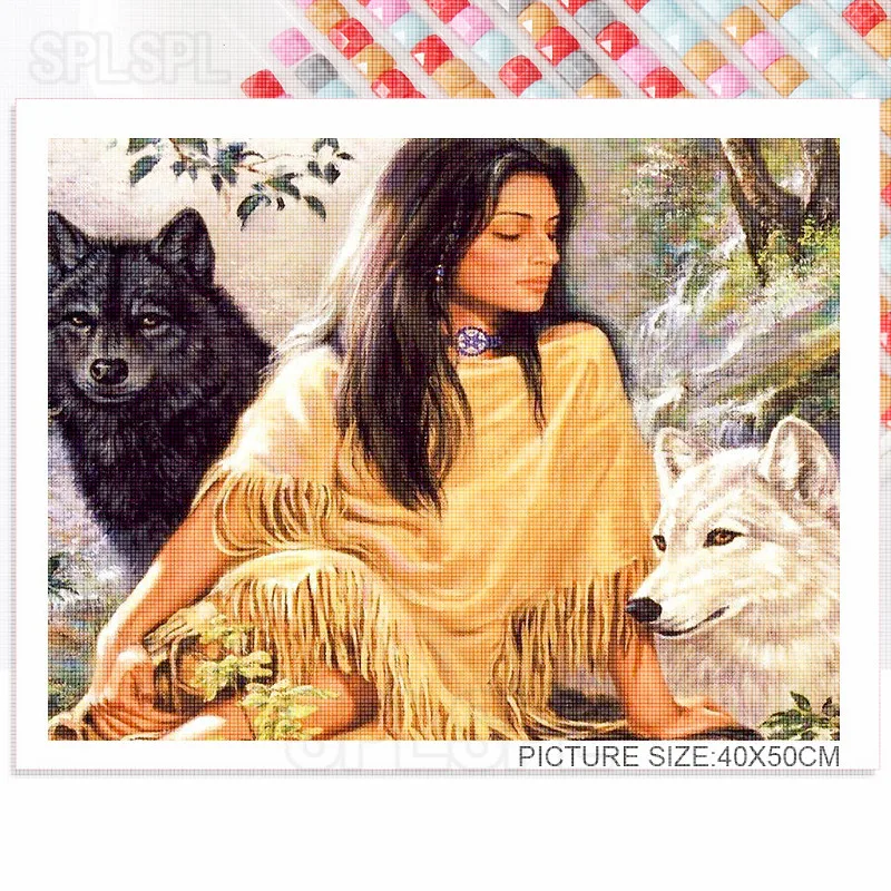 Алмазная живопись, Портрет женщины, живущей с волками в западных пограничных странах, спальня, коридор, декоративная картина