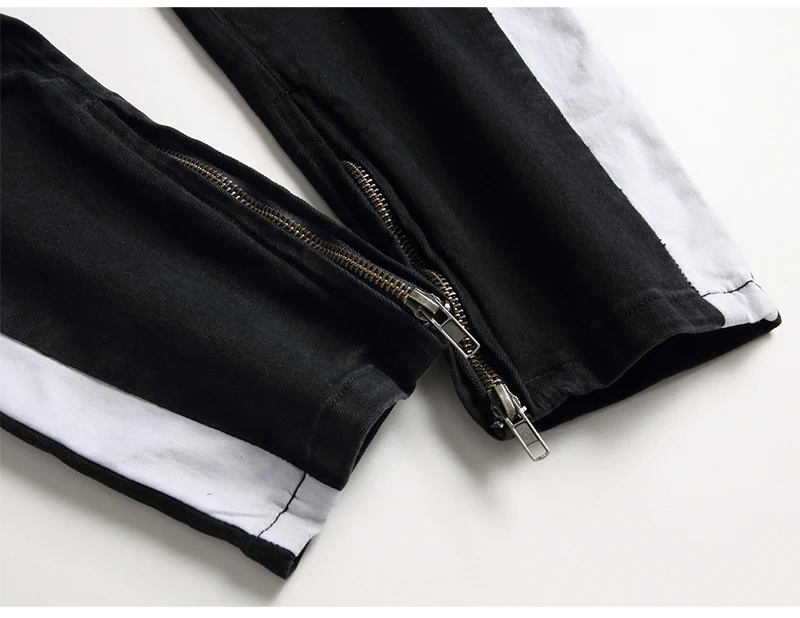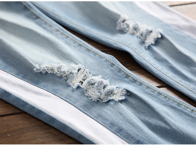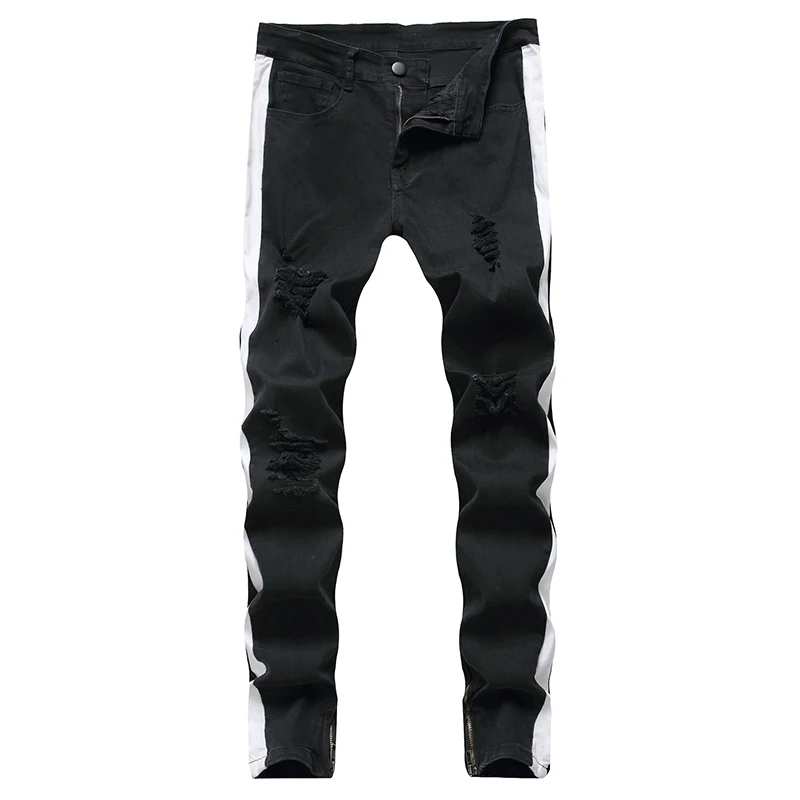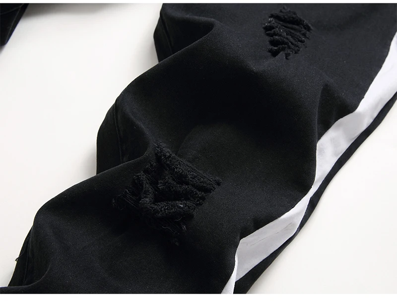 Мужские джинсы стрейч, с белыми полосками, рваные, узкие брюки в уличном стиле