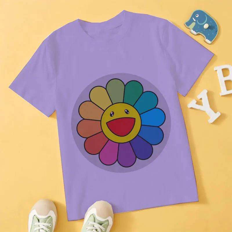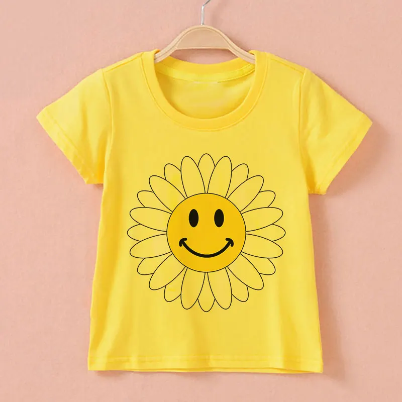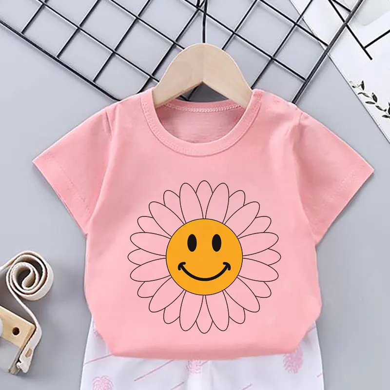 Новинка 2021, забавная Милая Детская футболка с круглым вырезом и мультяшным улыбающимся радугой, летние топы, модная повседневная детская одежда