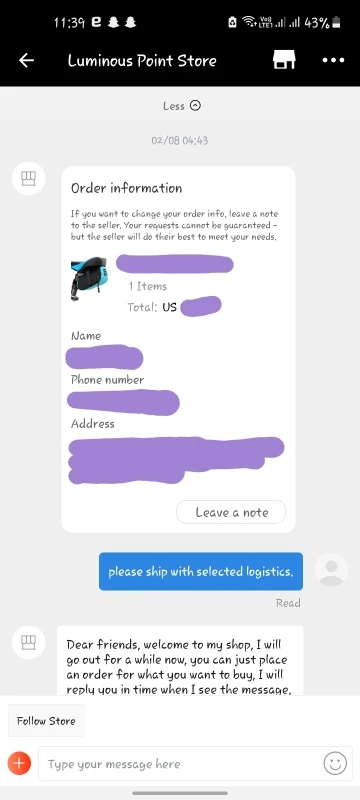 Никогда не ожидала, что продавец понравится. После того, как я разместил свой заказ через новый купон пользователя. Они требуют дополнительной платы за доставку, если они не будут отправлять мой продукт.