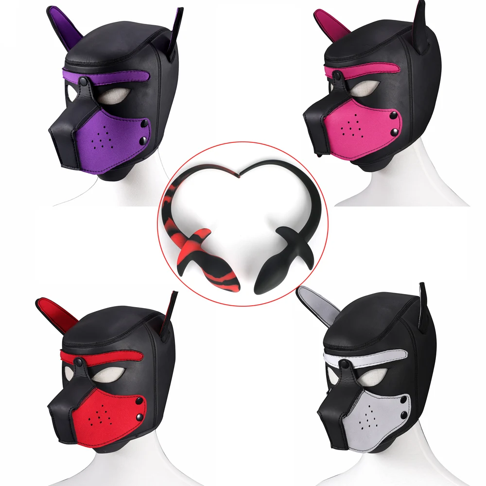 БДСМ Связывание щенок играть собачий капюшон маска раб мопс маска силиконовый Длинный Собачий хвост Анальная пробка Фетиш собака ролевые игры секс игрушки для пар