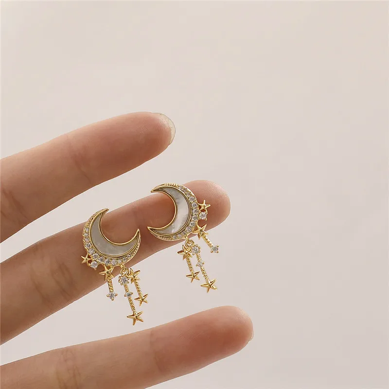 Элегантные серьги-подвески в виде Луны и звезды Стразы для женщин, милые романтичные серьги с кисточками и золотым кристаллом и полумесяцем, ювелирные изделия для свадебной вечеринки