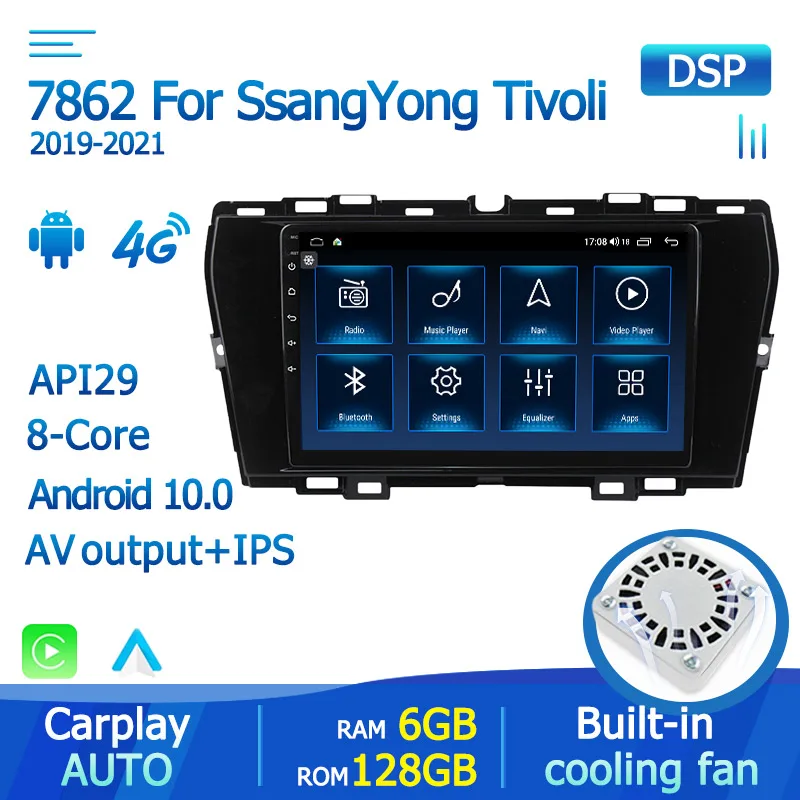 Восьмиядерный Android 10 Carplay AUTO RDS Для SsangYong Tivoli 2019 2020 2021 автомобильное радио мультимедийный Dvd плеер Navi Stereo GPS 4G LTE
