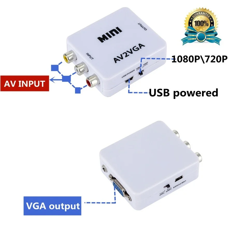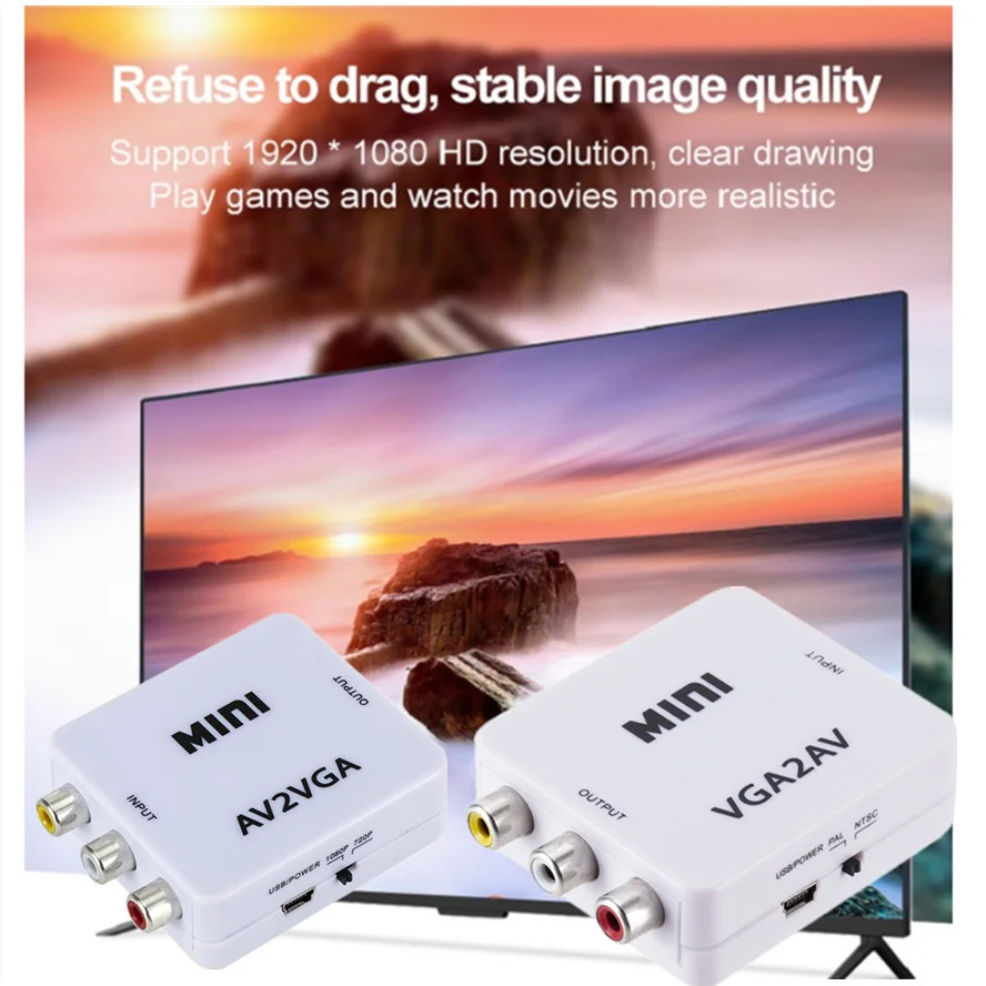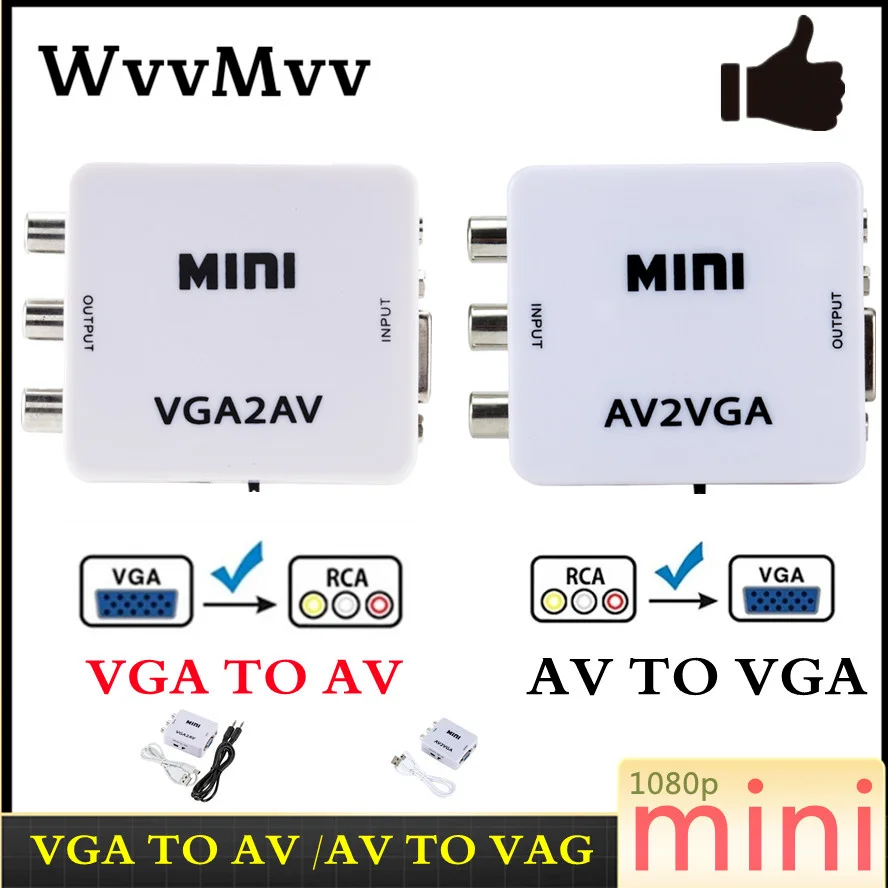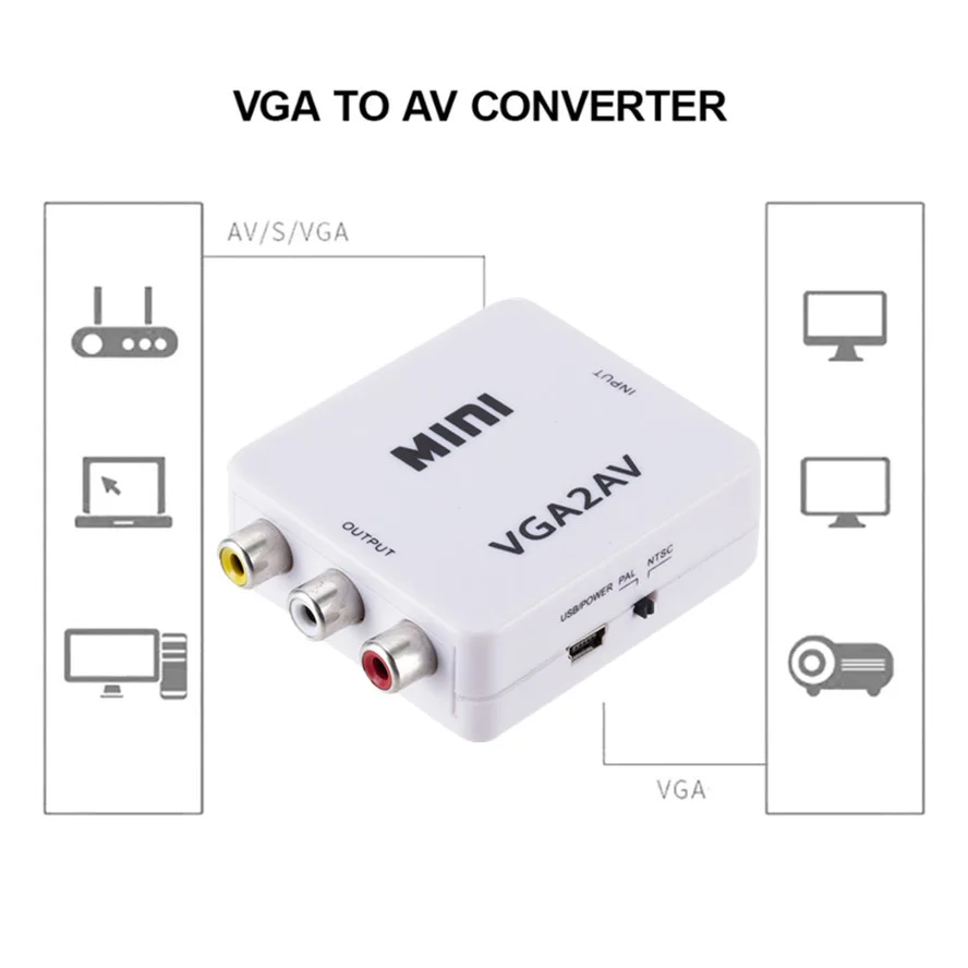 Преобразователь видео WVVMVV HD Mini RCA CVBS AV в VGA с 3,5 мм аудио адаптер AV2VGA для ПК на ТВ HD компьютер на телевизор 1080P
