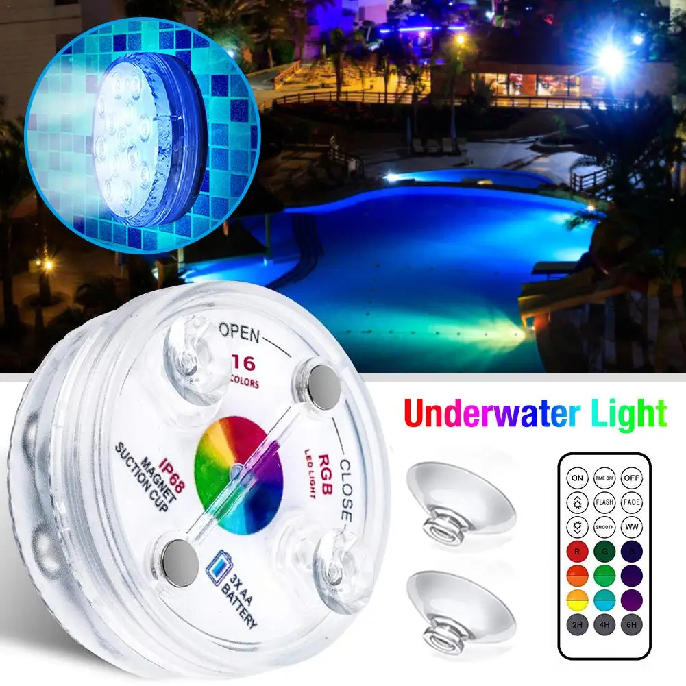 16 цветов подводный светильник светодиодный RGB погружной светильник для бассейна IP68 водонепроницаемый с радиочастотным пультом дистанционного управления для аквариумов