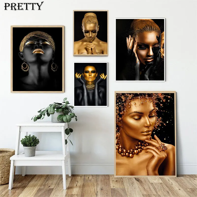 Скандинавская живопись, африканская черная Золотая фотография стен, Современные художественные фигурки, плакаты и принты, домашний декор